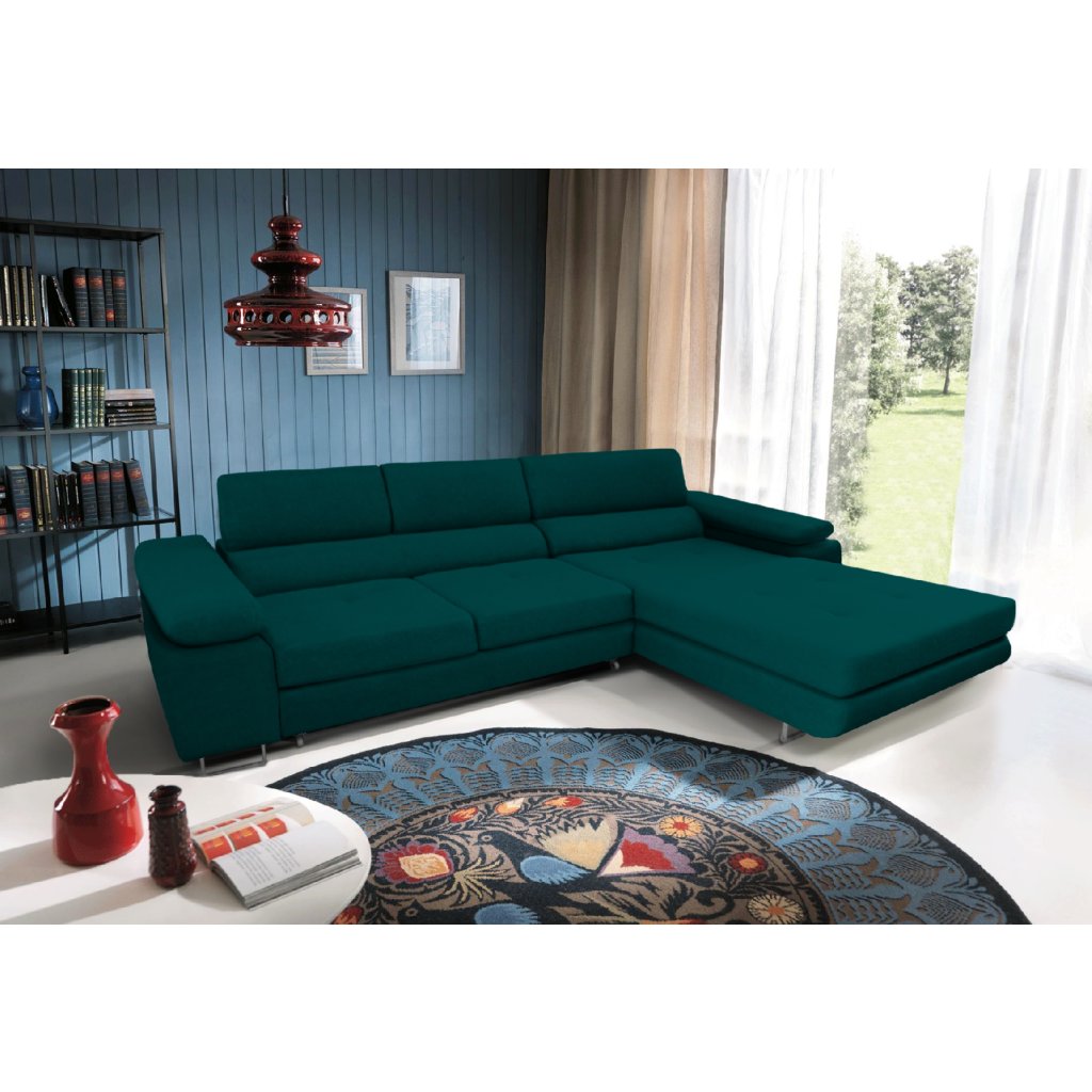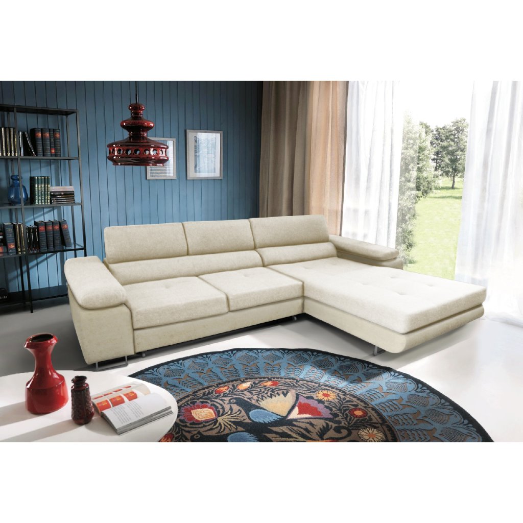 Vlnitá pružina a čalounická pěna T30 (středně tvrdá) 3 nastavitelná opěrka hlavy Pohodlné a snadné rozkládání díky funkci Delfín Rám vyrobený z 19mm dřevotřískové desky a borovicového dřeva Volně stojící model – má čalouněné záda Prostorný úložný prostor na lůžkoviny v otomanu Prošívaná sedadla Vysoké moderní leštěné niklové nohy