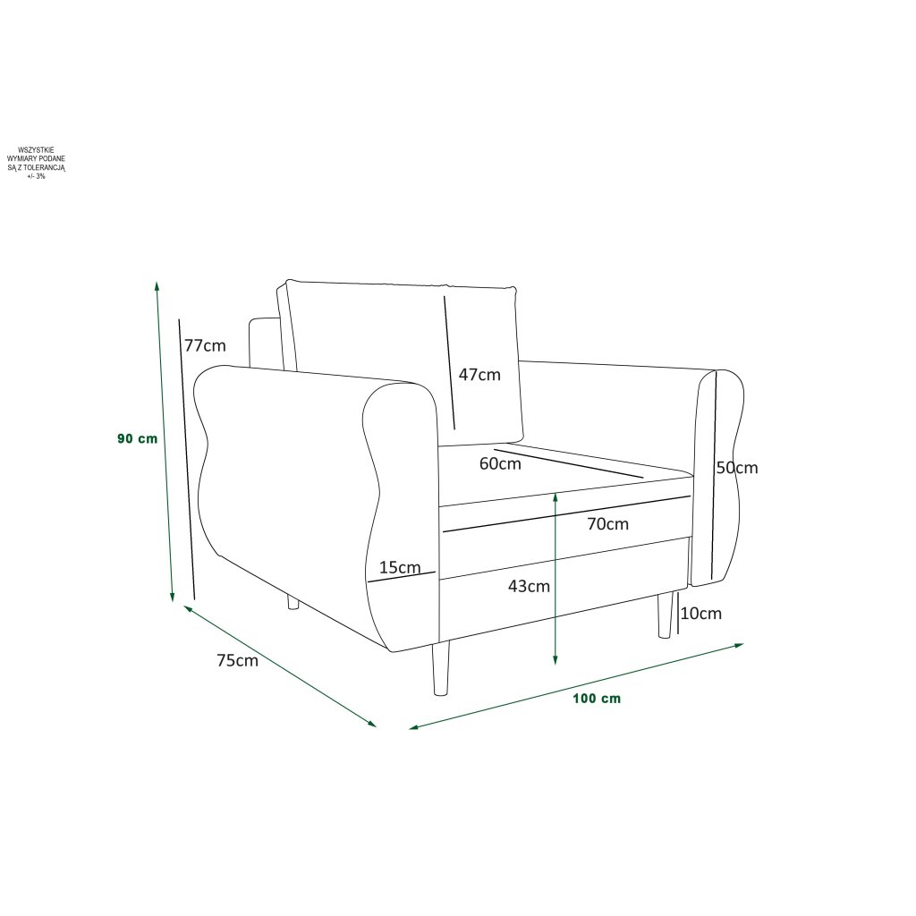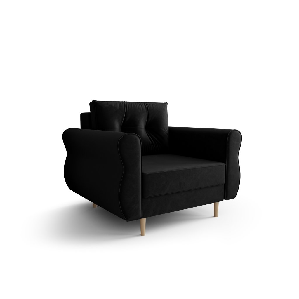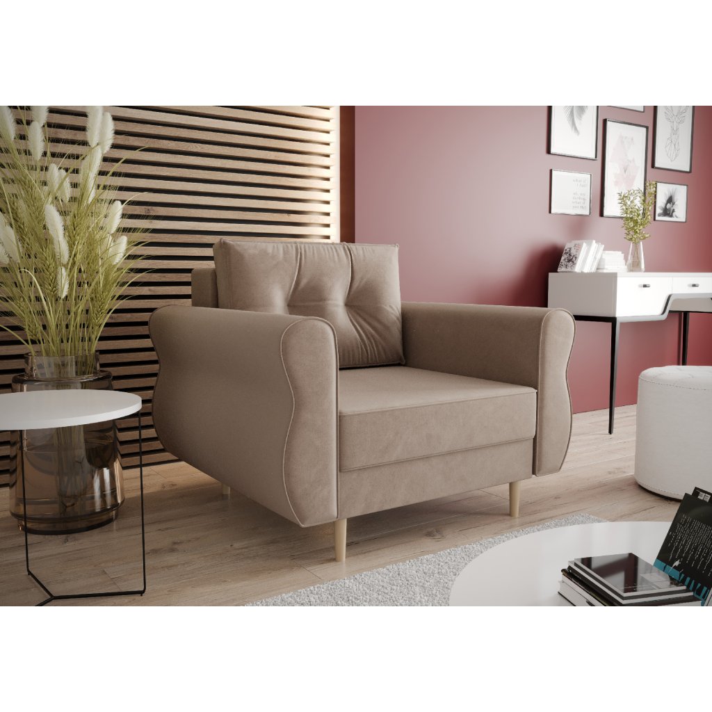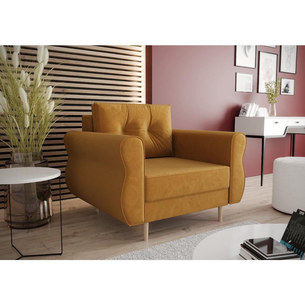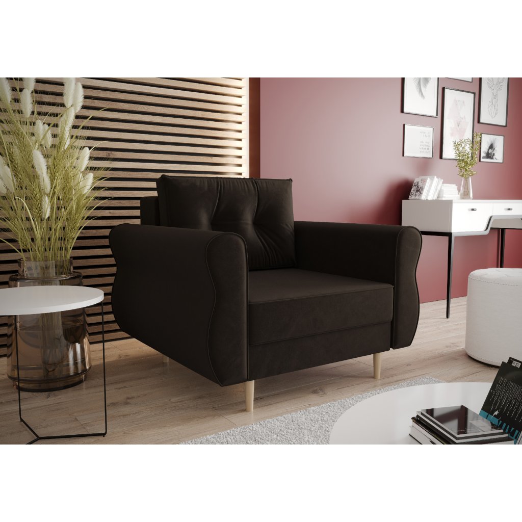 křeslo je volně stojící (zadní část potažena látkou)
