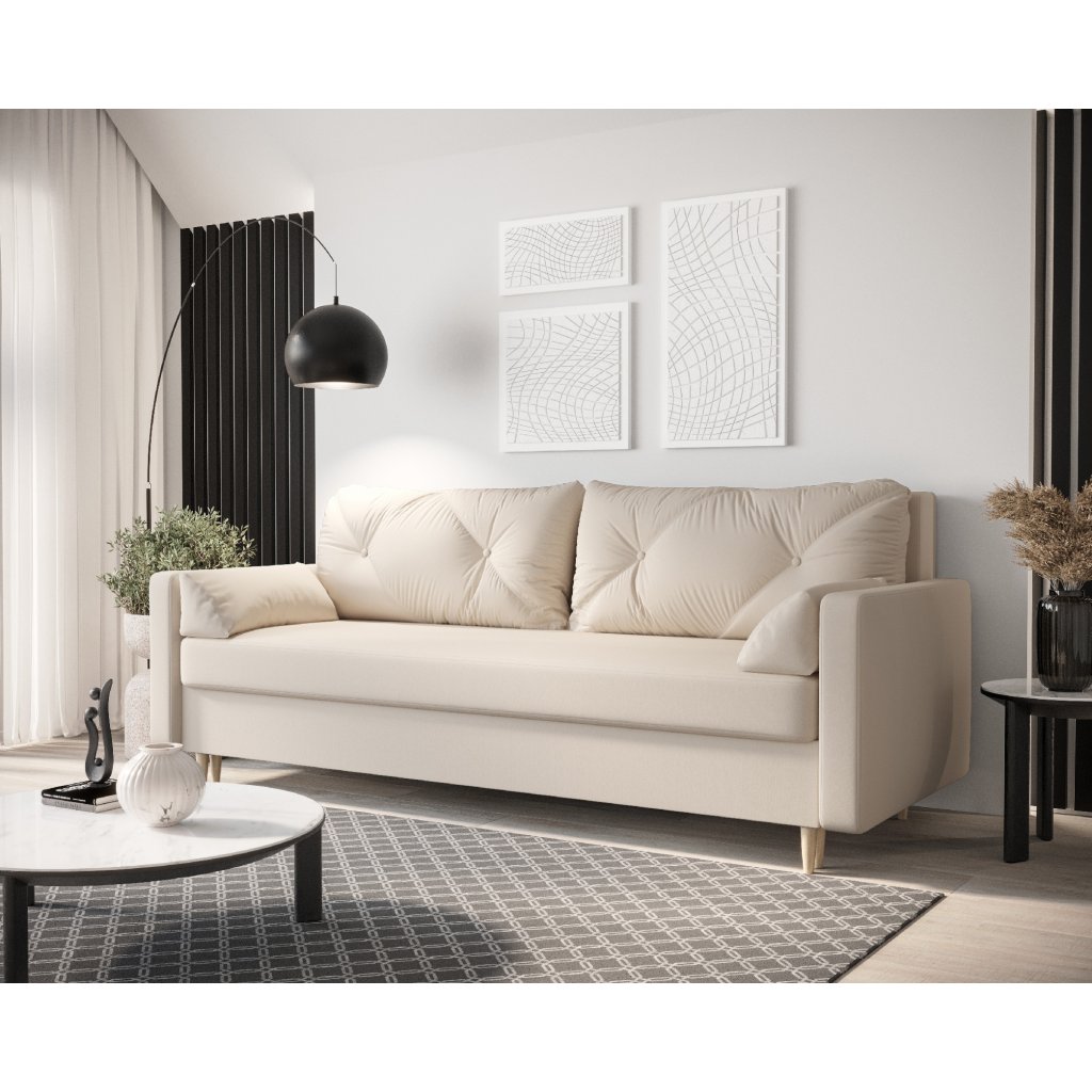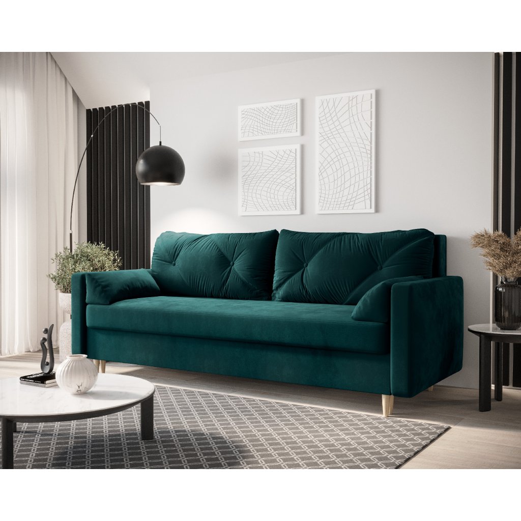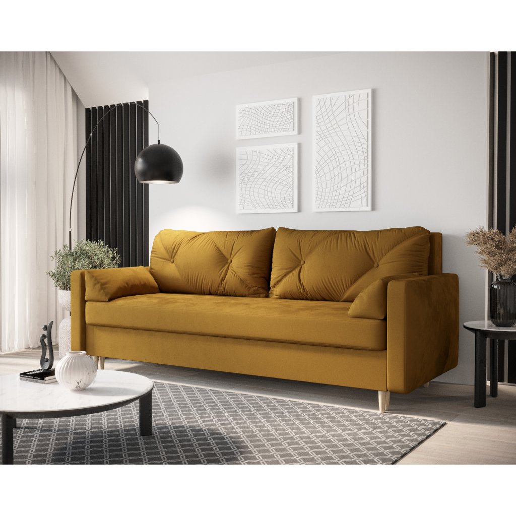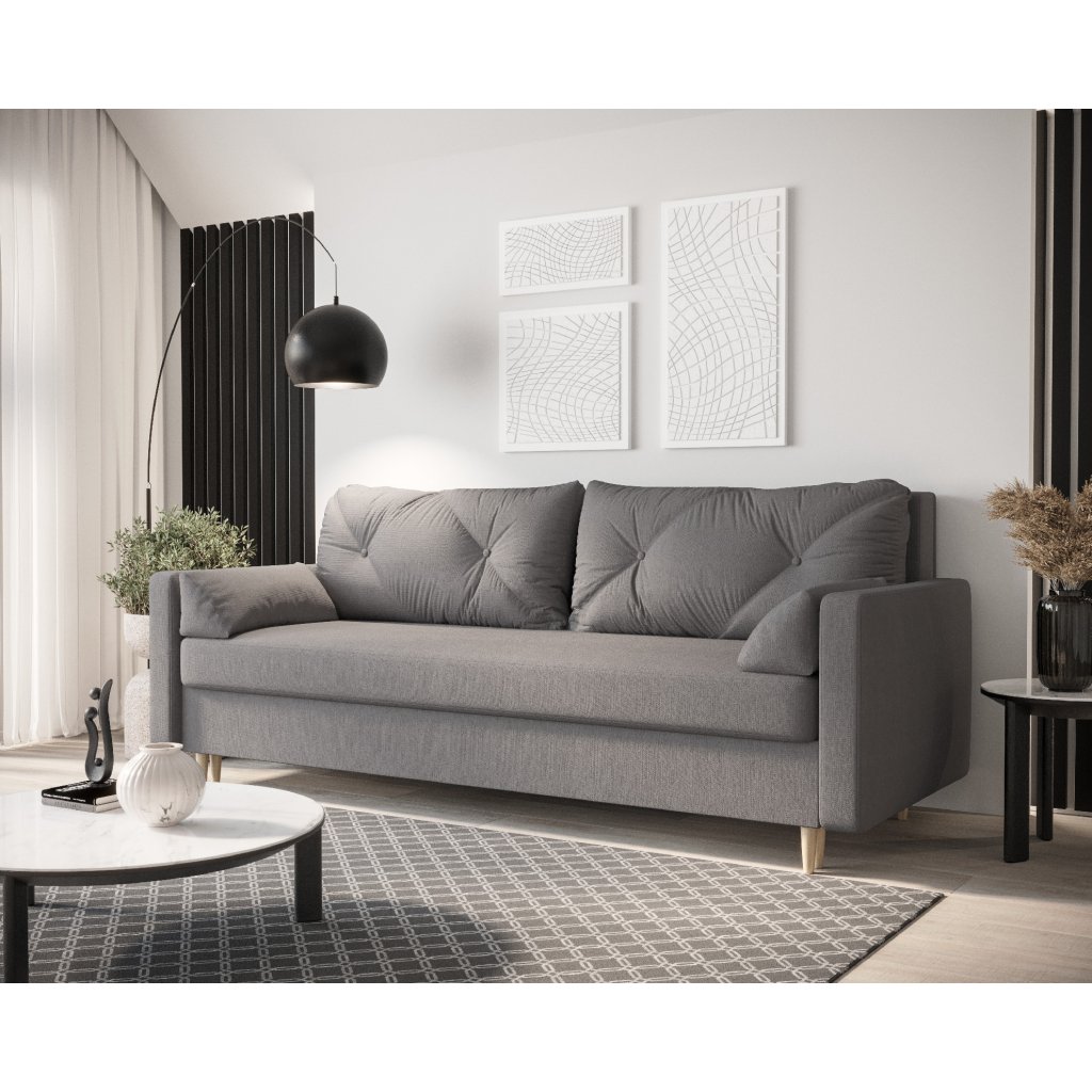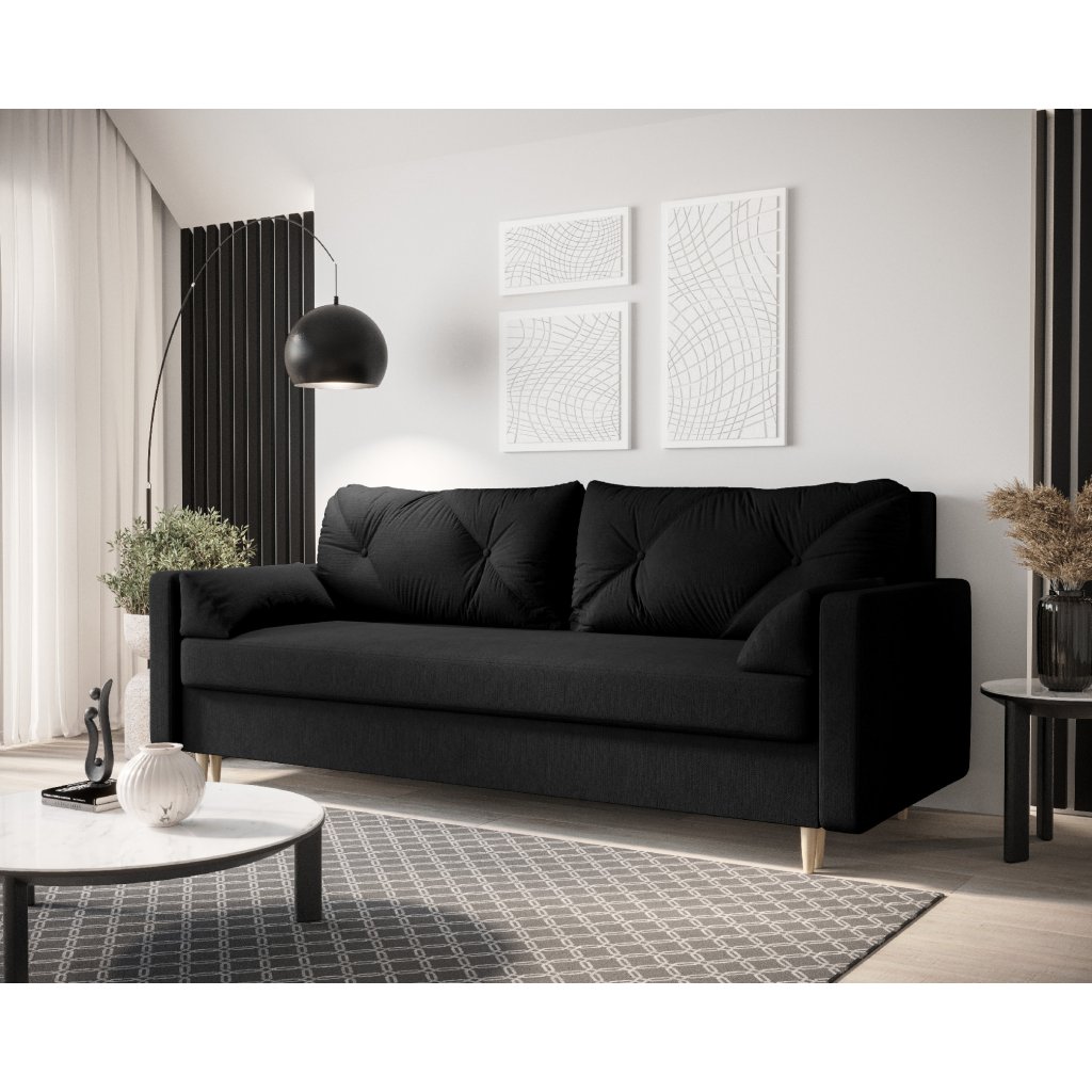 pohovka je volně stojící (zadní část čalouněná látkou)