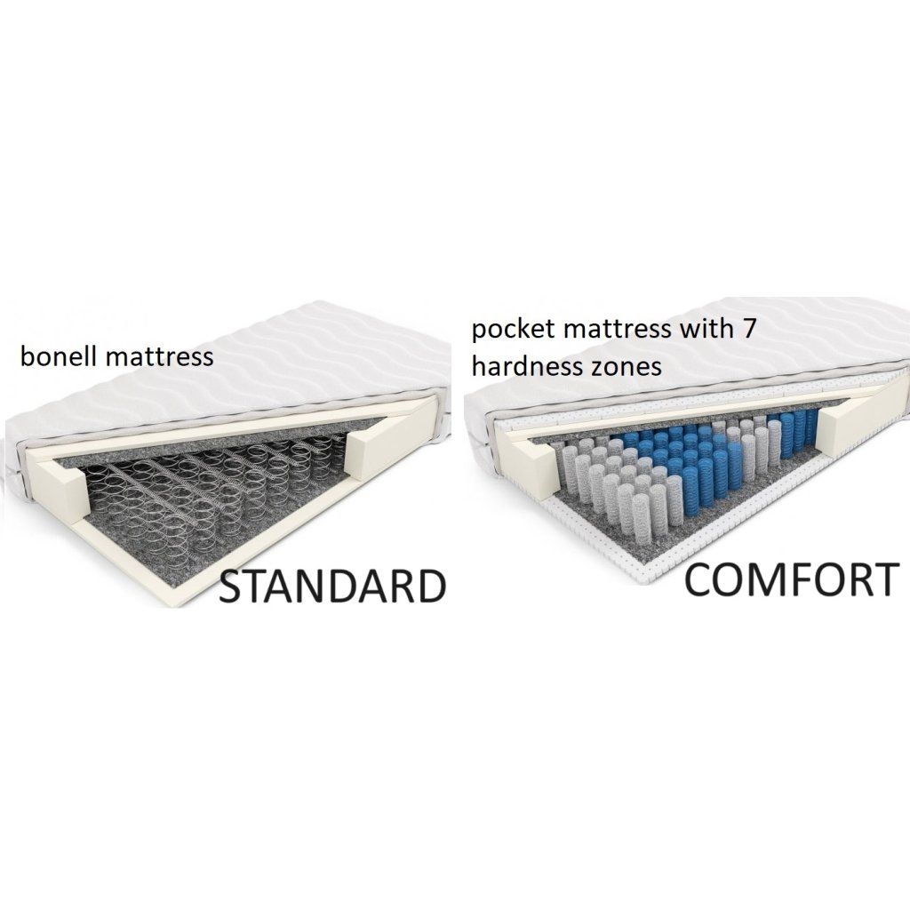 Hledáte vysoký komfort, stylový vzhled a dlouhou životnost? V tom případě je pro vás americká postel CHESTER jasnou volbou. Manzelska postel o spací ploše 160x200 cm je vybavena kvalitní matrací, která se dokonale přizpůsobí přirozeným křivkám vašeho těla a topperem, který zvyšuje pocit pohodlí a relaxace. Vyznačuje se také velkorysým a snadno přístupným úložným prostorem.