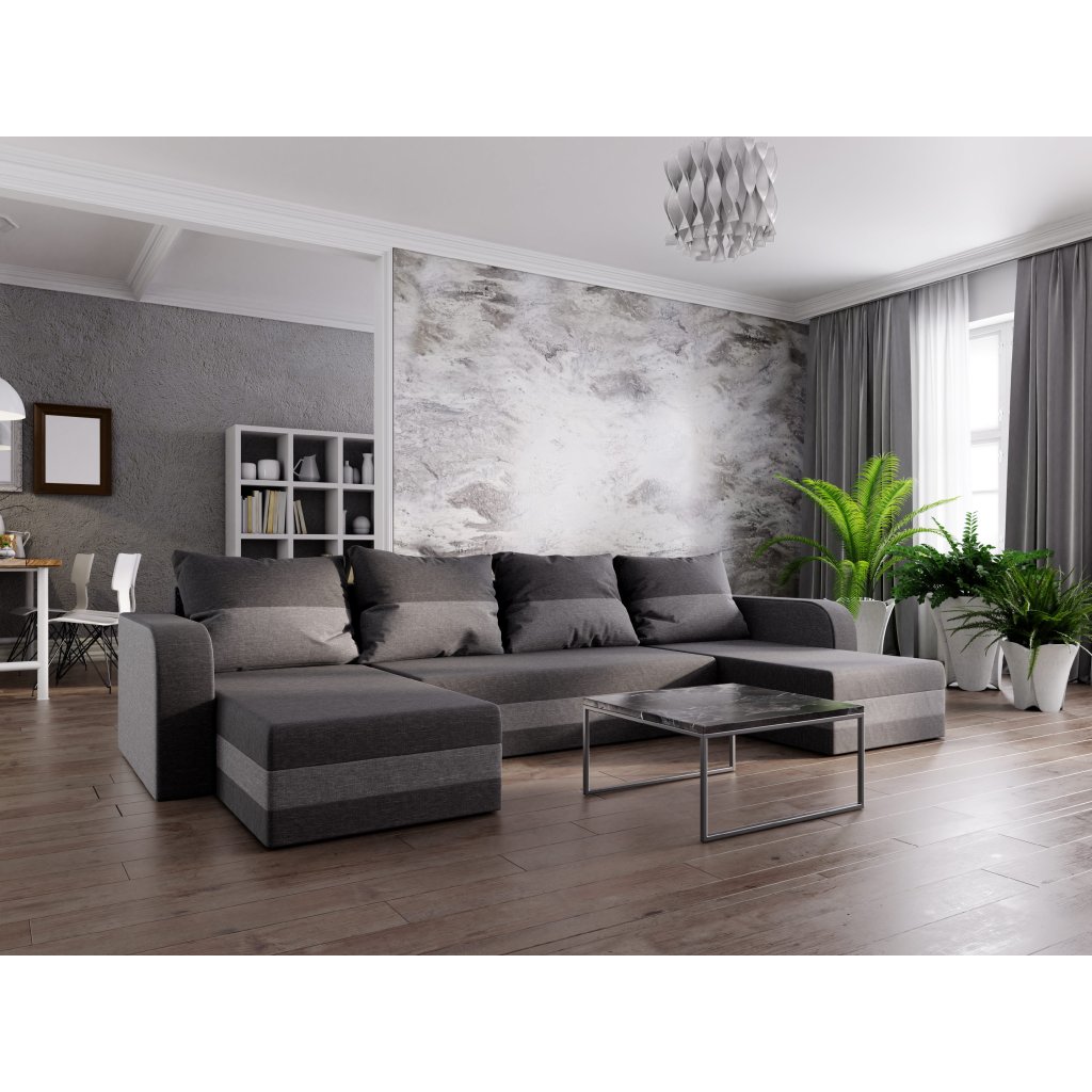 Rohová pohovka je volně stojící (zadní strana potažena látkou)