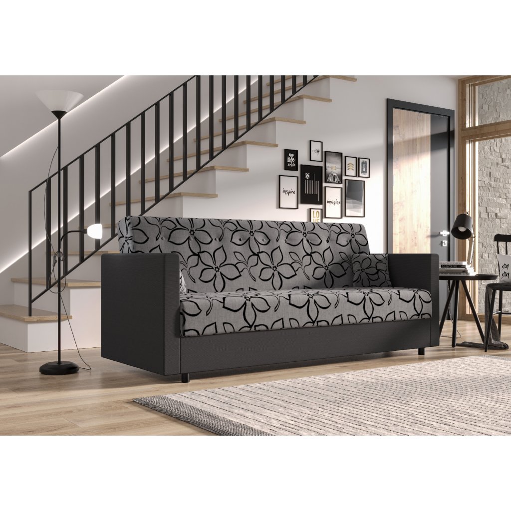pohovka není volně stojící (zadní část potažena černou náhradní látkou)