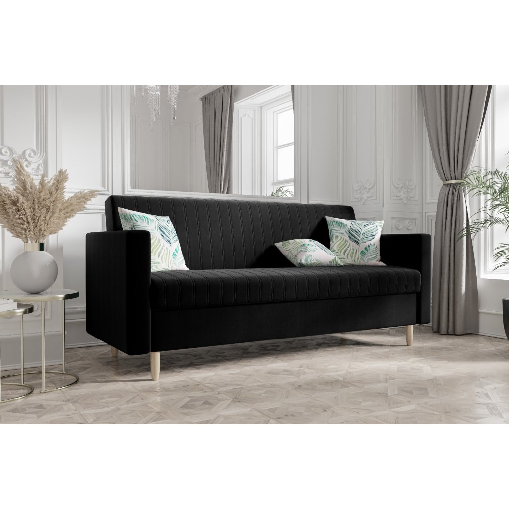pohovka není volně stojící (zadní strana čalouněná černou náhradní látkou)