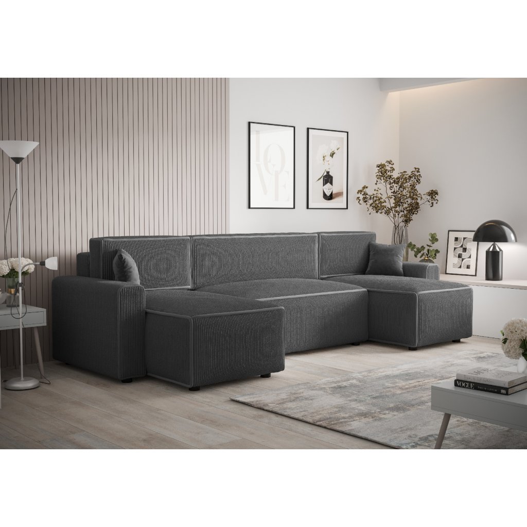 rohová sedačka má úložný prostor na ložní prádlo, vybavený mechanismem DL usnadňujícím rozkládání