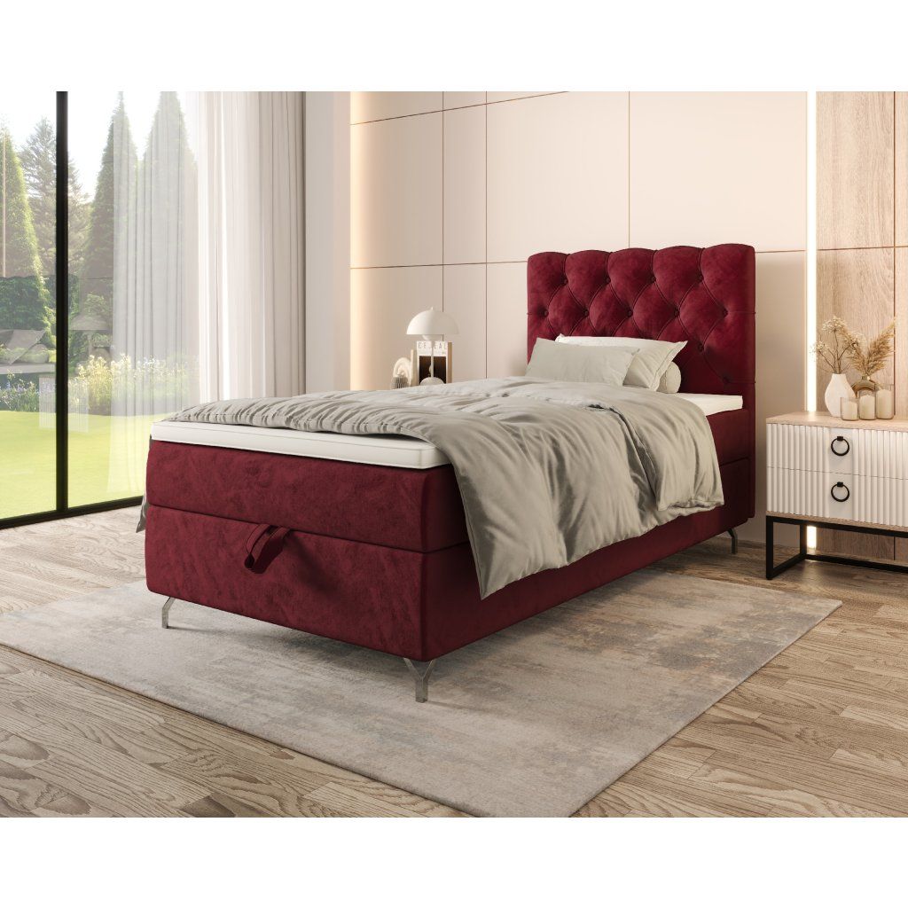 Uvnitř čalouněného spodního boxu se nachází velký úložný prostor. Tato postel je ideální volbou pro ty, kteří potřebují extra místo pro vložení nejen ložního prádla a sezónního oblečení. Snadno se k němu dostanete jednoduchým zvednutím matrace ze strany postele. Matrace je pevně uchycena k úložnému prostoru pomocí pružinových mechanismů, což zajišťuje snadnou manipulaci.