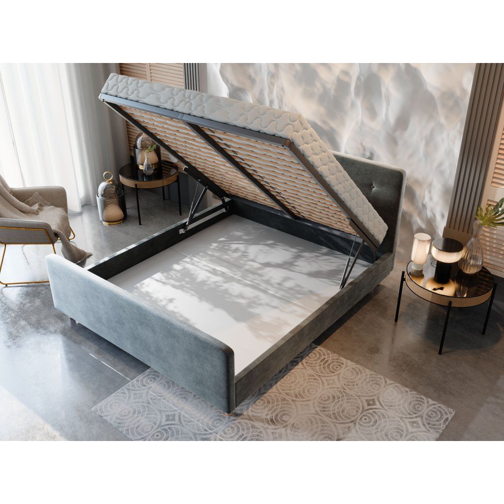 Manželská postel 140x200 CUPRA nadchne zajímavým prošíváním. Čalouněné čelo zajistí ještě větší pohodlí. Nechybí ani praktický úložný prostor.
