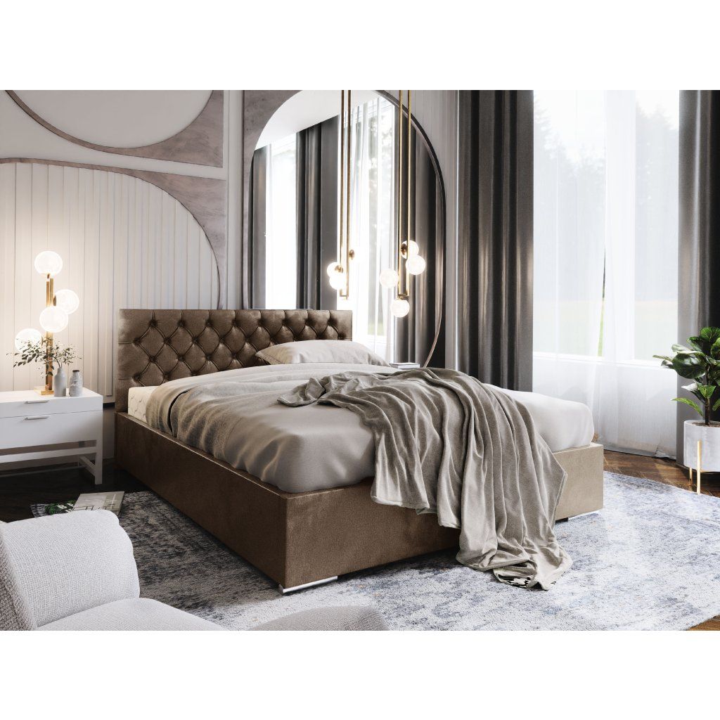 Ložnice je prostorem, kde by se měl každý cítit pohodlně a uvolněně. Proměňte ji v oázu klidu a vyberte si čalouněnou postel DANILO, která spojuje prvky praktičnosti a komfortu. Díky pevné konstrukci a exkluzivním látkám se stane nejen krásným prvkem ložnice, ale také funkčním kusem nábytku na mnoho let. Postel DANILO vám nabídne jednoduchý minimalistický design, lze si vybrat hned v několika barevných kombinacích. Díky použitým materiálům je postel pevná a stabilní, samotná instalace je snadná a zvládne ji kdokoliv bez větších zkušeností. Rám postele je vyroben z pevné a odolné nábytkové desky, která je jednoduchá na údržbu. Zadní čelo je uzpůsobené pro přisunutí postele až ke zdi, čelo je vysoké 110 cm.