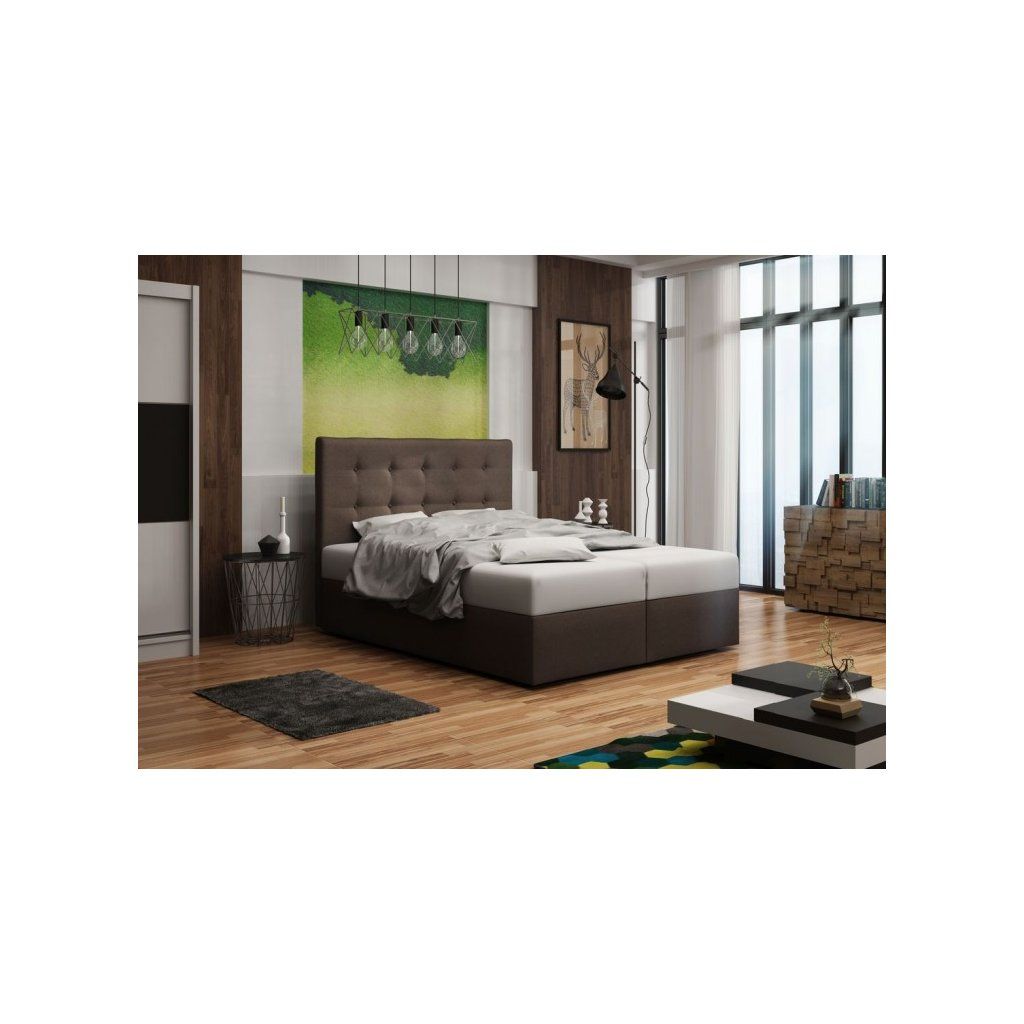 Čalouněná postel CALVI 160x200 cm s pružinovou matrací.