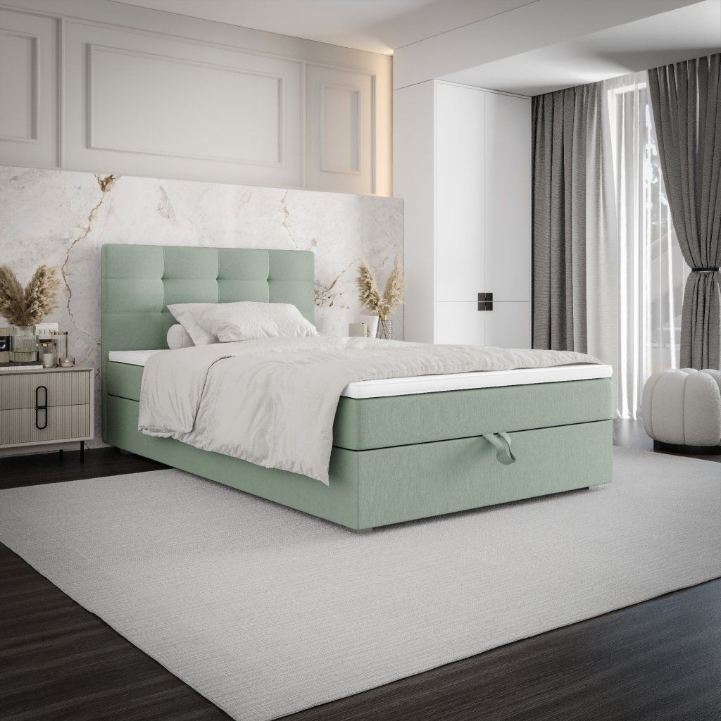 Součástí postele je zabudovaná matrace a úložný prostor. Postel dodáváme bez vyobrazeného topperu. Vhodné modely k dokoupení najdete v sekci Doporučujeme přikoupit.