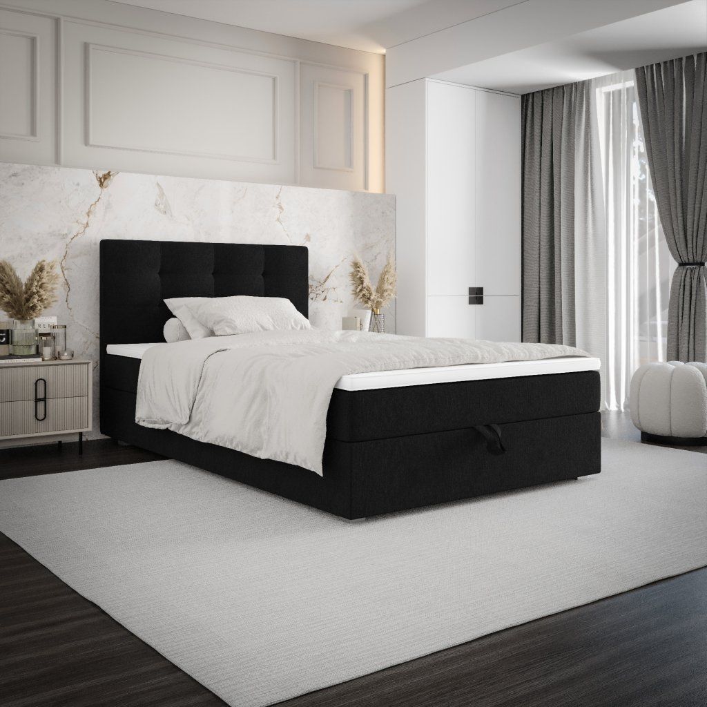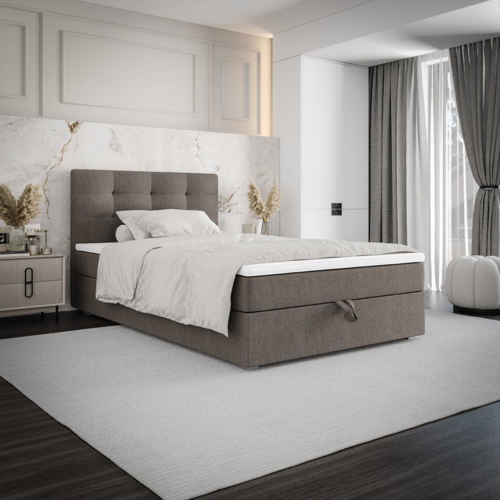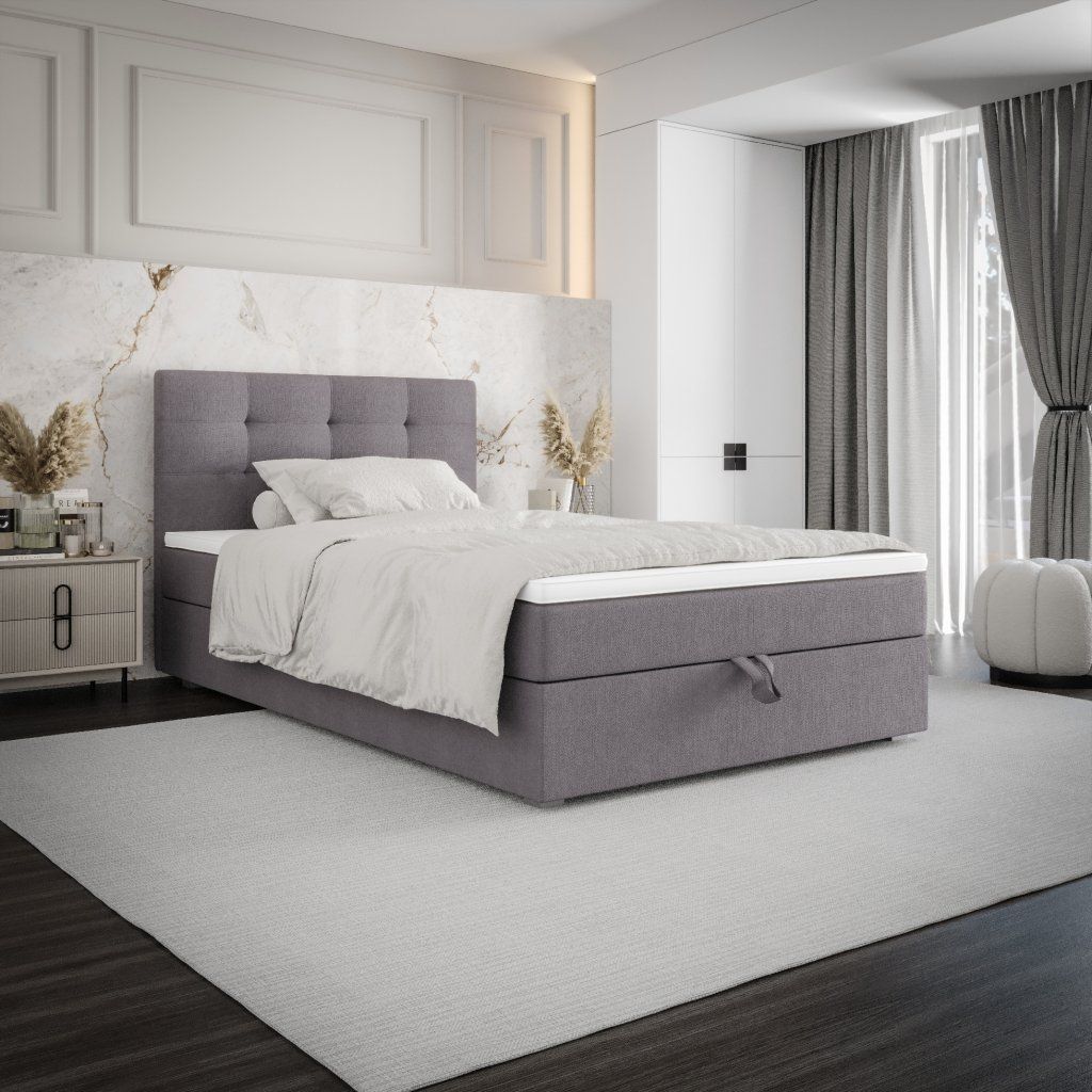 Součástí postele je zabudovaná matrace a úložný prostor. Postel dodáváme bez vyobrazeného topperu. Vhodné modely k dokoupení najdete v sekci Doporučujeme přikoupit.