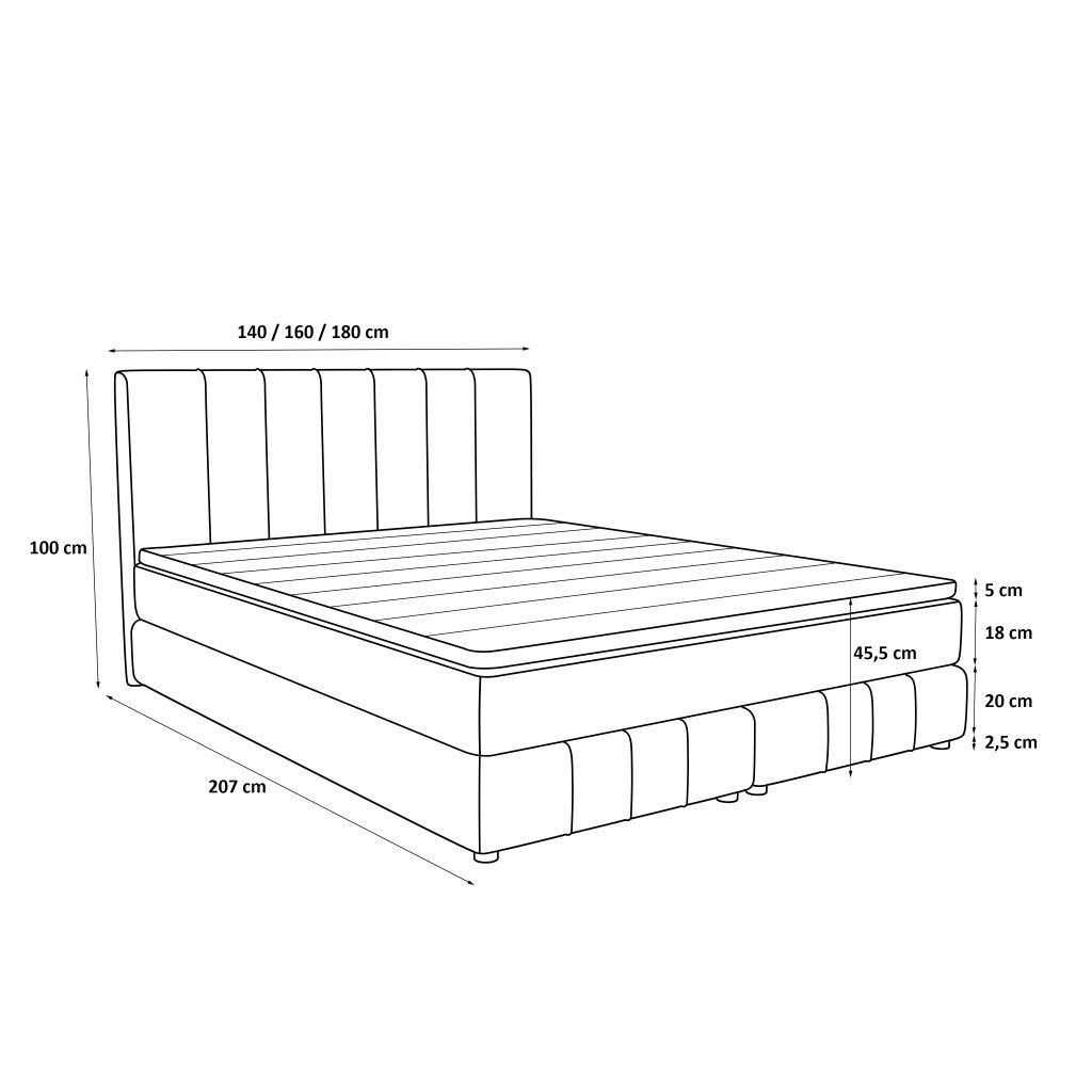 - ložná plocha: 180x200 cm