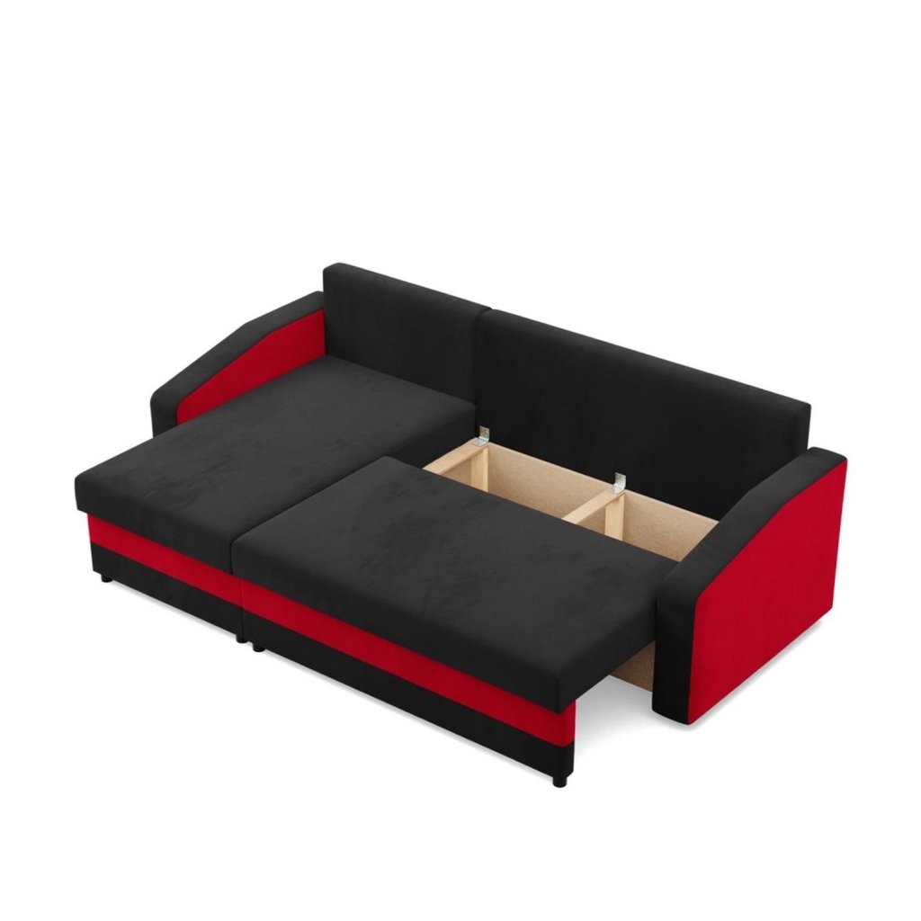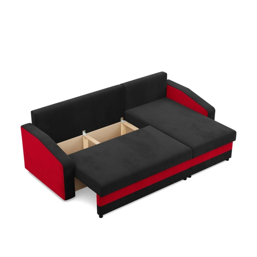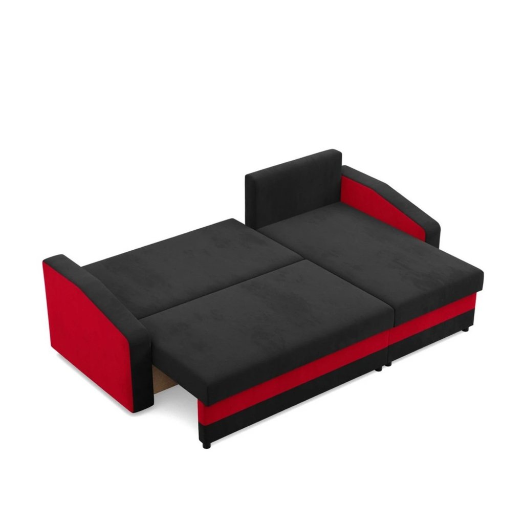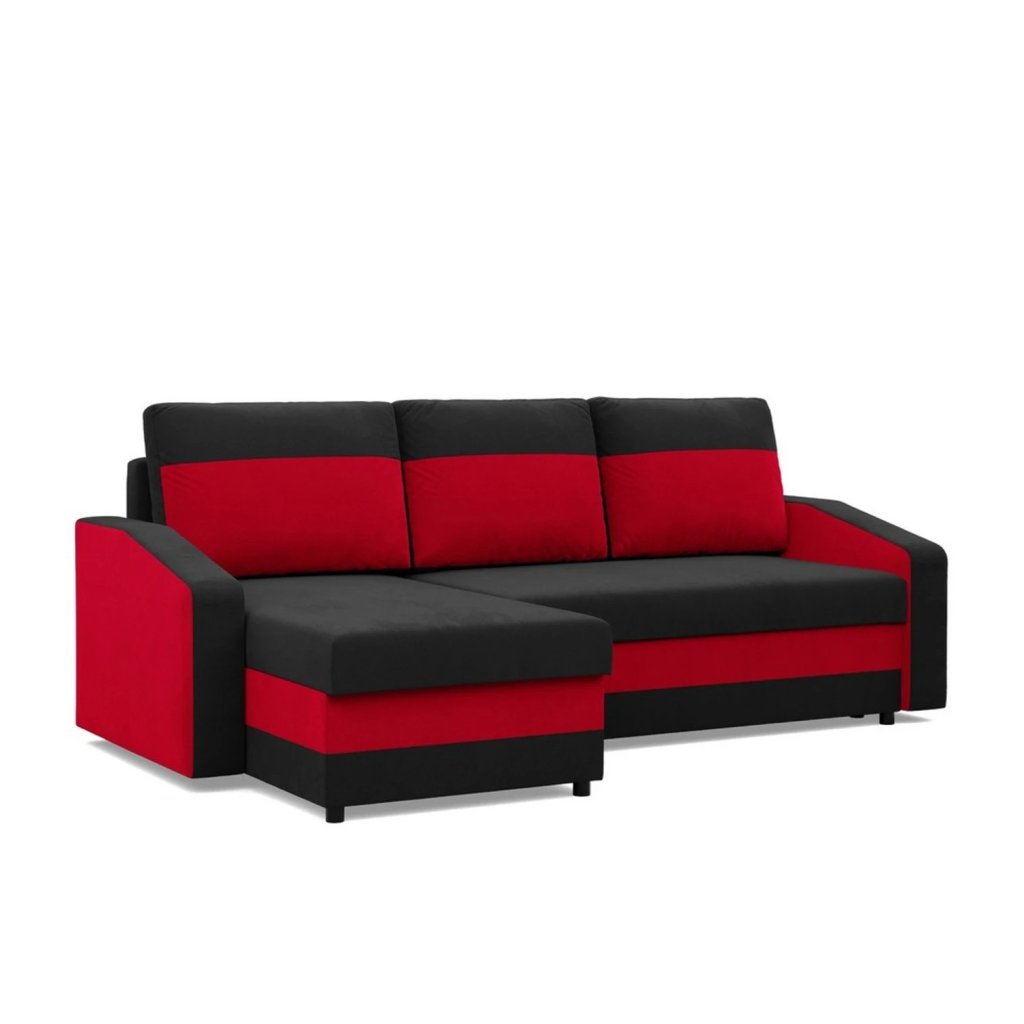 Rozkládací rohová sedací souprava HEWLET model 2 Černá-červená